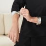 Comfy, relaxed-fit set is fully lined with silvery sweat-technology fabric. Pullover crewneck with elastic cuffs and hem. Elastic-waist jogger-style pant with side pockets and elastic cuffs. Polyester/spandex. Machine wash. Imported. M 28"; W 30", both have 28" inseam.